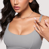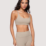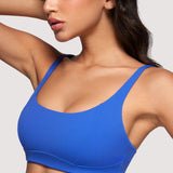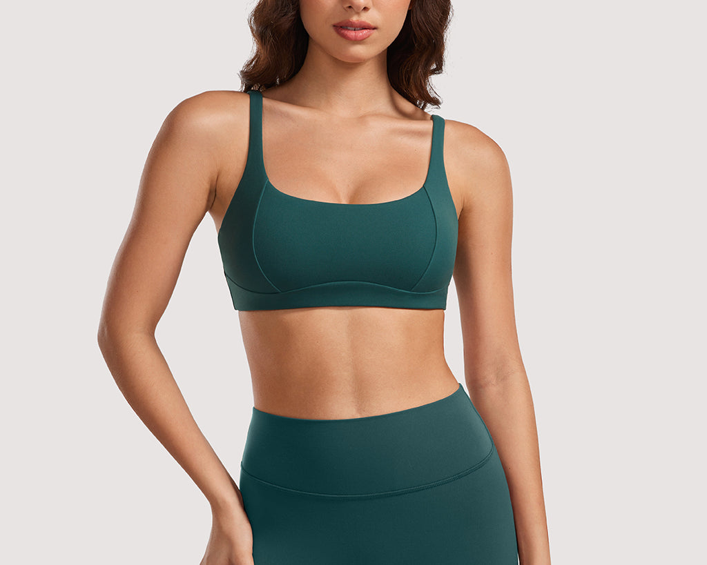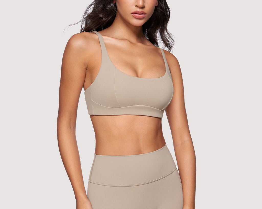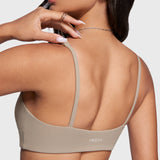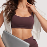 Elevate your activewear with our stylish sports bra. Designed for low-impact workouts, this bra is extremely soft, stretchy and lightweight. Contoured paneling and a curved, low-cut neckline can flatter your figure. Light support, suitable for yoga, pilates, ballet, fitness, or daily lounging.
